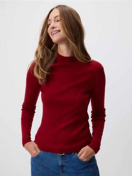 Sweter z dodatkiem wełny – bordowy