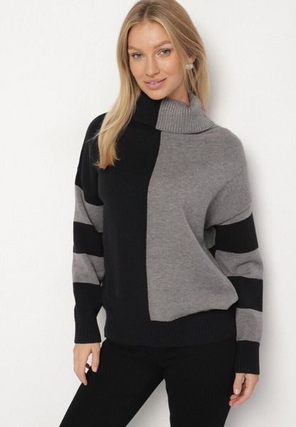 Czarno-Szary Golf z Geometrycznym Wzorem w Paski Eminerria