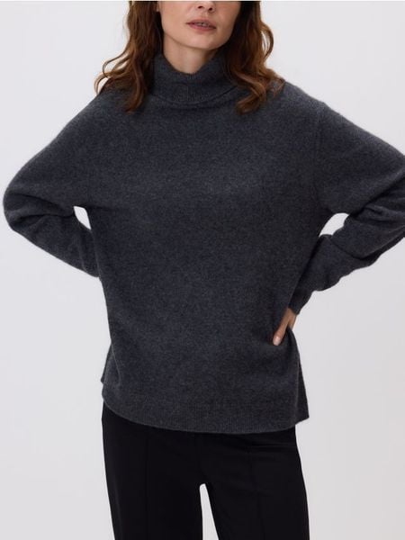 Sweter o prostym kroju, wykonany z wełnianej dzianiny z kaszmirem.