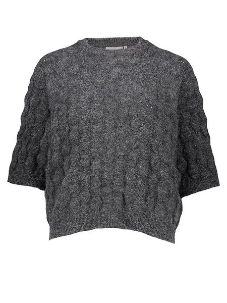 – z dodatkiem poliestru pochodzącego z recyklingu- dekolt: okrągły- wzór splotu: warkocz- długość rękawa: 3/4- krój: prosty- look: jednokolorowy