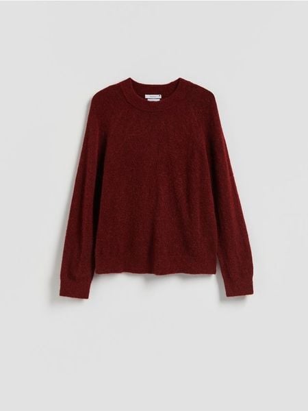 Sweter o prostym kroju, wykonany z dzianiny z wełną i dodatkiem alpaki.