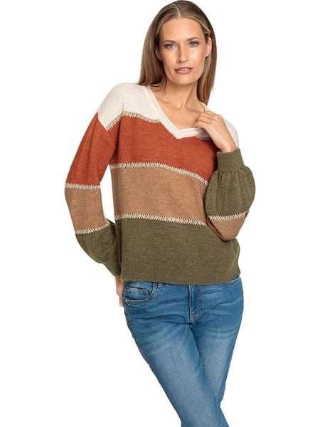 Heine Sweter w kolorze biało-oliwkowo-karmelowym rozmiar: 48