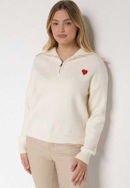 Biały Sweter z Bawełną Wiskozą i Wełną Ozdobiony Sercem Monissea