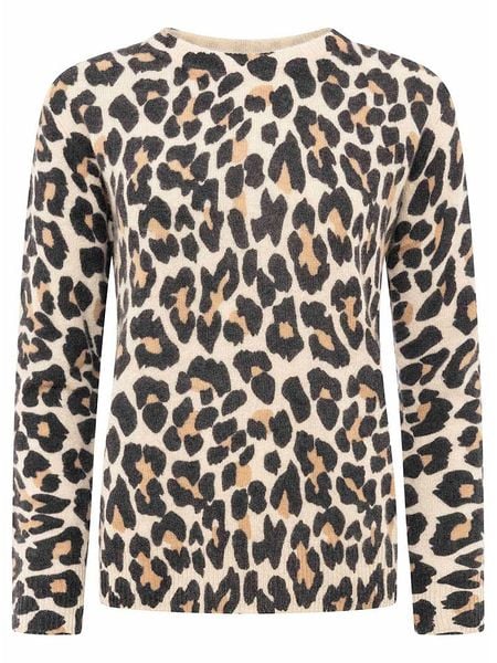 – czysty kaszmir- dekolt: okrągły- ściągacz: dekolt, zakończenia rękawów, dolny brzeg- krój: prosty- wzór splotu: ścisły- wzór: panterka