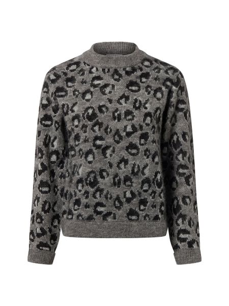 Marie Lund Damski sweter z dzianiny z wełną i moherem Kobiety Wełna szary|czarny wzorzysty, XS