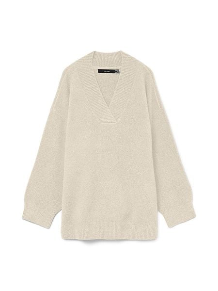 – z dodatkiem wełny- dekolt: V- ściągacz: dekolt, zakończenia rękawów, dolny brzeg- krój: prosty- wzór: melanżowy