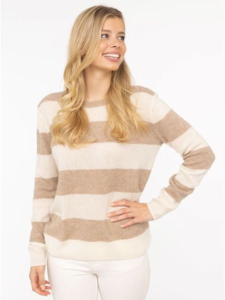 – czysty kaszmir- dekolt: okrągły- ściągacz: dekolt, zakończenia rękawów, dolny brzeg- krój: luźny- wzór: paski