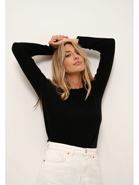 – czysty kaszmir- dekolt: okrągły- krój: prosty- look: jednokolorowyUwaga: Zaniżona rozmiarówka – ten produkt zalecamy zamawiać w rozmiarze o jeden numer większym niż zwykle.