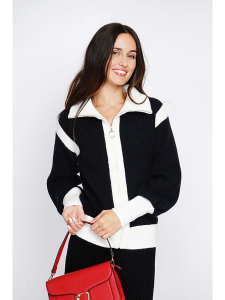 – z dodatkiem kaszmiru- kołnierz: stójka- dekolt: V- zapięcie: suwak- wzór splotu: luźny- krój: prosty- wzór: colour blocking