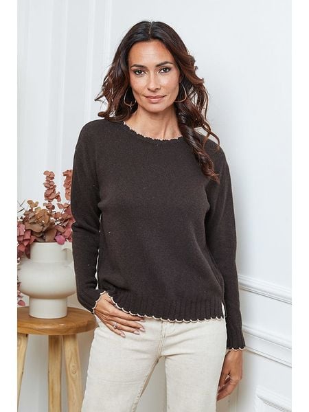 – z dodatkiem kaszmiru i wełny- dekolt: okrągły- ściągacz: dekolt, zakończenia rękawów, dolny brzeg- dolny brzeg: z rozcięciem- krój: prosty- look: jednokolorowy- wzór splotu: ścisły