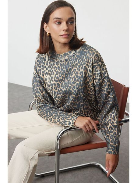 – dekolt: okrągły- krój: luźny- wzór: panterka
