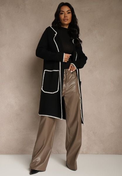 Czarny Kardigan z Haftowaną Lamówką Tuscele