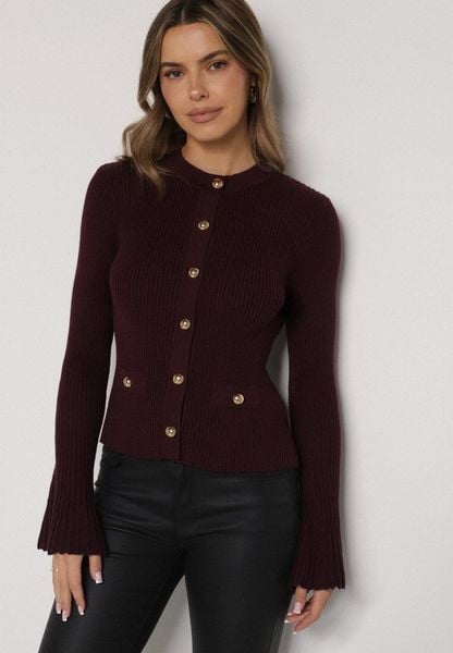 Bordowy Kardigan z Wiskozą Ozdobiony Rozszerzanymi Rękawami i Guzikami Tiolenda