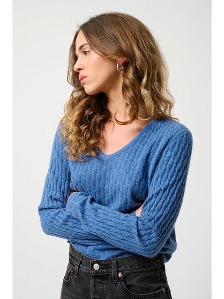 – czysty kaszmir- dekolt: V- wzór splotu: warkocz- krój: prosty- look: jednokolorowy