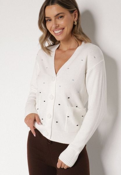 Biały Rozpinany Kardigan w Kropki Tusvanea