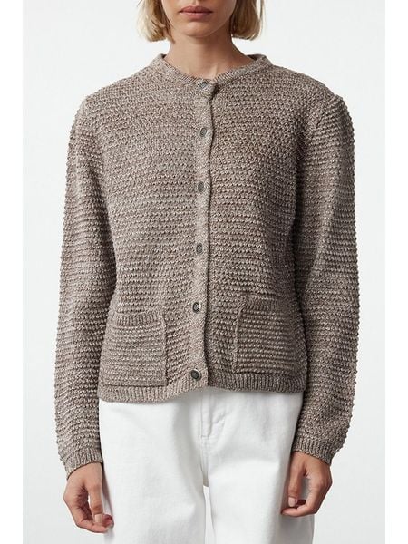 – dekolt: okrągły- zapięcie: listwa guzikowa- kieszenie: naszyte- wzór splotu: luźny- krój: prosty- wzór: melanżowy