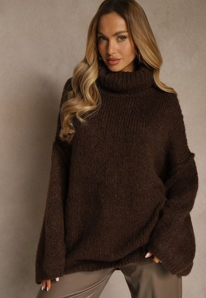 Brązowy Oversizowy Golf z Dodatkiem Wełny i Wiskozy Tenafera
