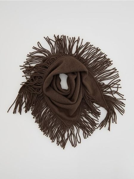 Szal z frędzlami – ciemnobrązowy