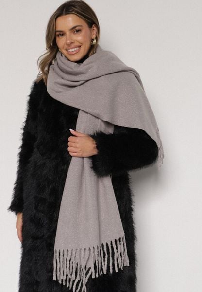 Szary Klasyczny Szalik Zdobiony Frędzlami Vetilana