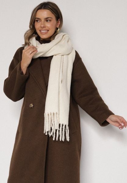 Jasnobeżowy Klasyczny Szalik Zdobiony Frędzlami Vetilana