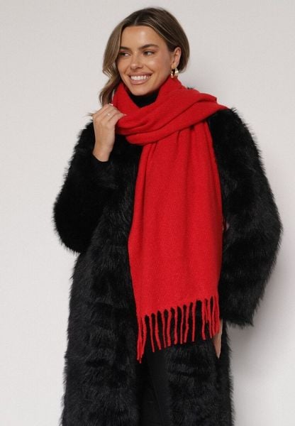 Czerwony Klasyczny Szalik Zdobiony Frędzlami Vetilana