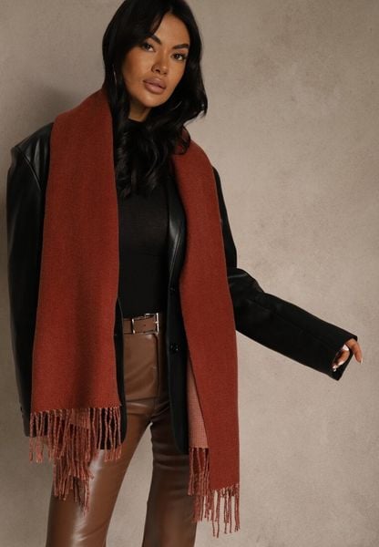 Bordowy Szalik z Bawełny i Wiskozy o Klasycznym Fasonie z Frędzlami Vetirosa