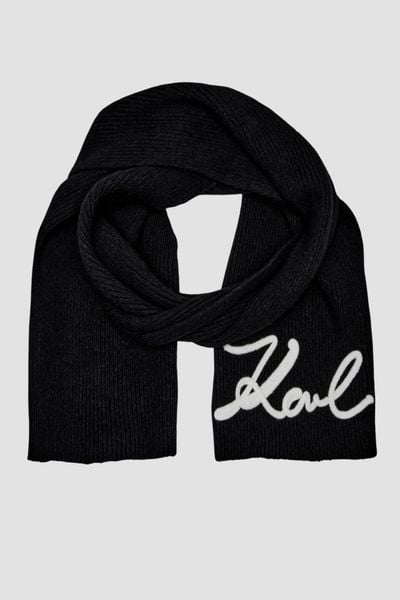 KARL LAGERFELD Czarny szalik damski Logo Signature z domieszką wełny