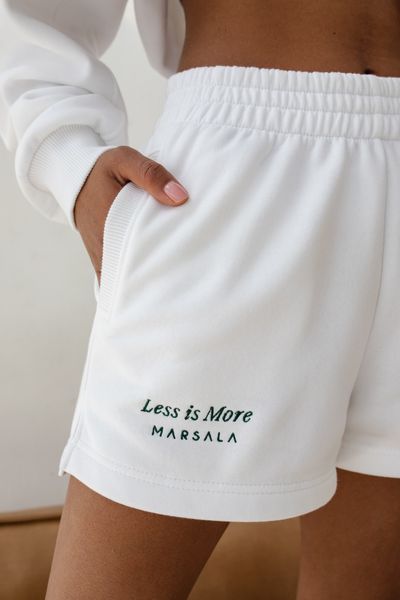 Szorty z dzianiny dresowej z haftem zielonym w kolorze CHEMICAL WHITE – LE PETIT