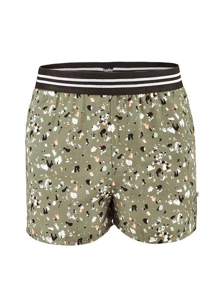 – wysokość pasa: regular waist- fason: comfort fit- pas / ściągacz: elastyczny- wpuszczane kieszenie- wzór: na całości