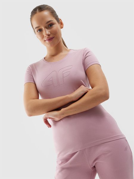 4F T-shirt slim z nadrukiem damski – jasny róż S