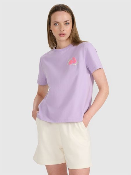 4F T-shirt oversize z nadrukiem damski – fioletowy L