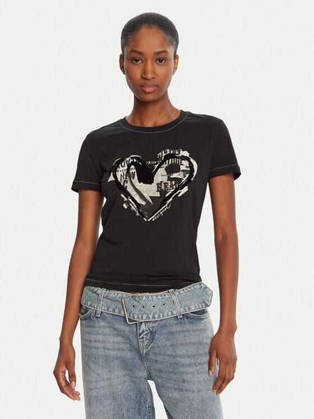 Desigual T-Shirt Letter Core 25WWTK04 Czarny Regular Fit