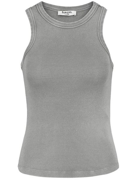 – ramiączka: sportowy krój pleców- dekolt: okrągły- krój: wąski- look: jednokolorowy, prążkowany
