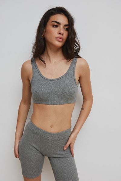 Krótki top z dzianiny waflowej w kolorze SZARYM – LAGO -XL