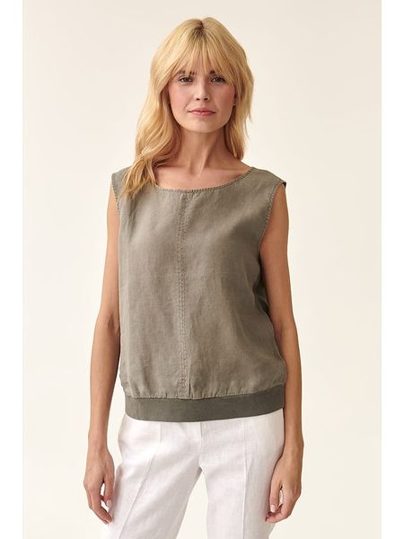 – czysty len- ramiączka: szerokie- ściągacz: dolny brzeg- krój: prosty- wzór: melanżowy