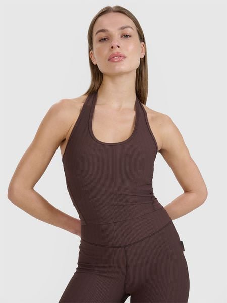 4F Crop top slim gładki damski 4F x Anna Lewandowska – brązowy XS