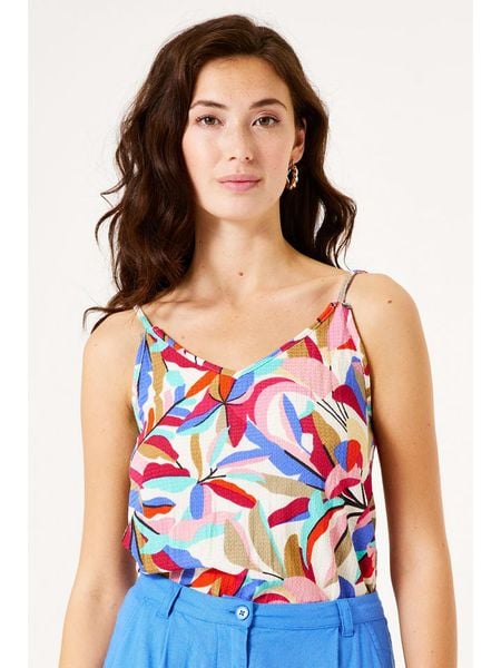 – z dodatkiem poliestru pochodzącego z recyklingu- dekolt: V- ramiączka: regulowane- krój: prosty- wzór: na całości