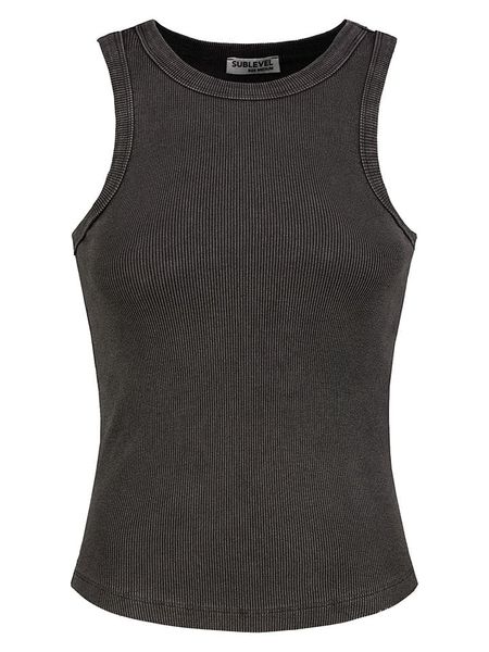 czarne topy topy z okrągłym kołnierzem topy bez ramiączek odzież, obuwie, dodatki damskie limango.pl odzież, obuwie, dodatki damskie sublevel topy sublevel topy ze sklepu limango.pl topy bez kołnierzyka topy bez rękawów