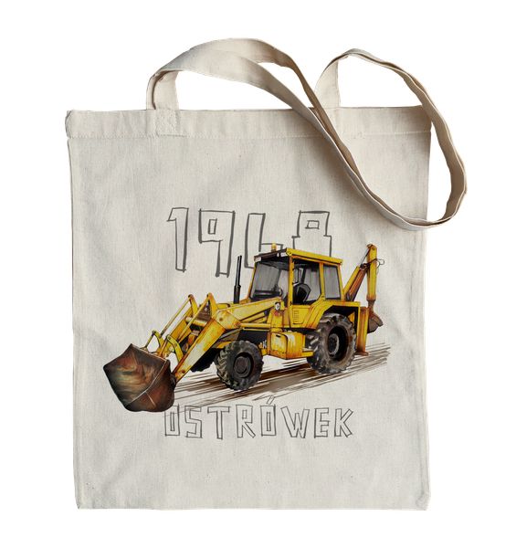 Bawełniana torba na ramię z koparką Ostrówekwymiary: 38 x 42 cm, długość uchwytu: 2,5 x 70 cmgramatura: 220gmateriał: bawełna 100%kolor: ecruOstrówek kt koparko ładowarkaHistoria koparko-ładowarki “Ostrówek” sięga końca lat 60., kiedy władze PRL zadecydowały o konieczności stworzenia polskiej, ludowej i niezawodnej koparki. Zaszczyt dostarczenia prototypu przypadł inżynierom ze stowarzyszenia ZREMB. Na początku lat 70. projekt […]