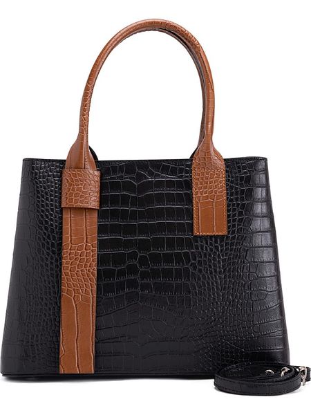 – materiał: skóra bydlęca- powierzchnia: o fakturze krokodylej skóry- uchwyty: 2- długi pasek przez ramię: odpinany- zapięcie: suwak- wewnętrzne detale: komora główna dzielona zasuwaną kieszenią- detale: zawieszka, metalowe nóżki- tekstylna podszewka: tak- wyprodukowano we Włoszech
