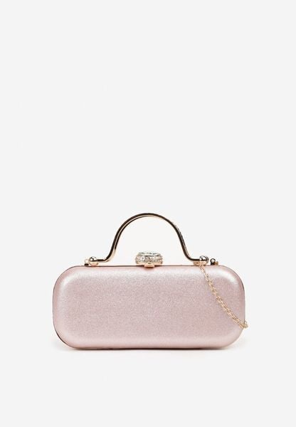 Szampańska Torebka Koktajlowa Zapinana na Zatrzask z Łańcuszkiem i Rączką Ozdobiona Cyrkoniami Carsea