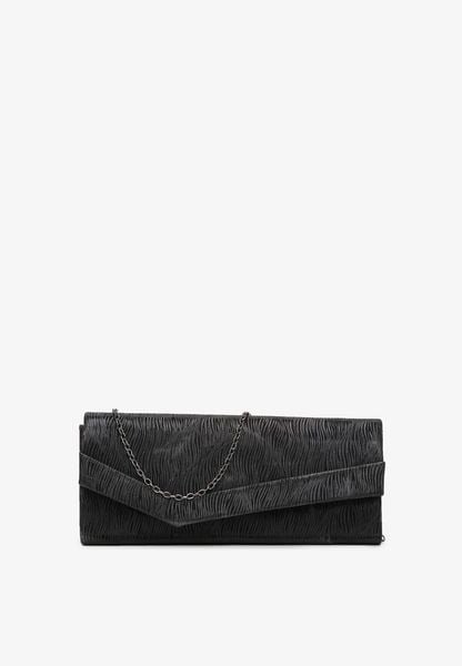 Czarna Brokatowa Torebka Kopertowa z Retro Zatrzaskiem i Łańcuszkiem Vardia