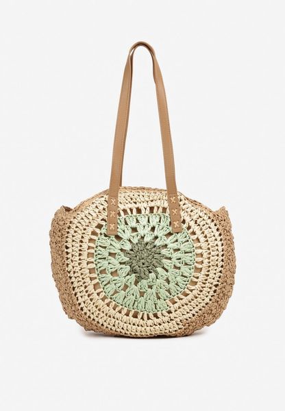 Zielono-Beżowa Pleciona Torebka w Stylu Boho Ulofina