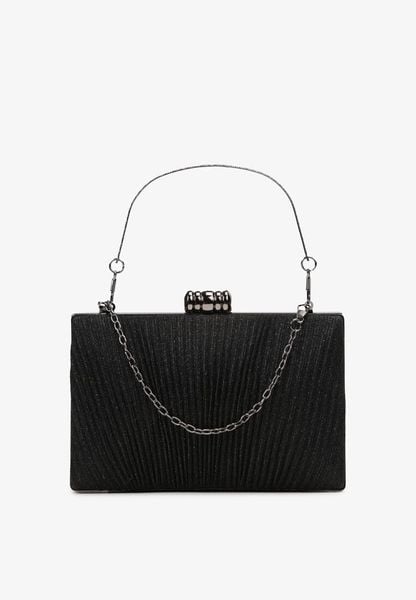 Czarna Brokatowa Torebka Kopertowa z Retro Zatrzaskiem i Łańcuszkiem Vardia