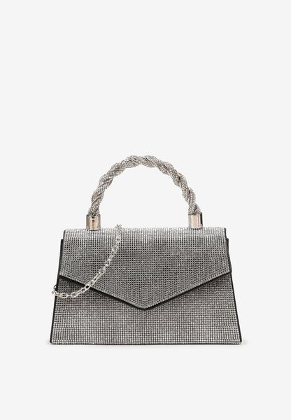 Srebrna Mała Torebka na Ramię z Rączką i Łańcuszkiem Ozdobiona Cyrkoniami na Magnes Xenatia