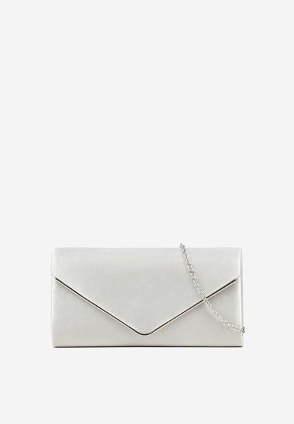 Srebrna Torebka Koktajlowa z Błyszczącego Materiału na Odpinanym Łańcuszku Solila