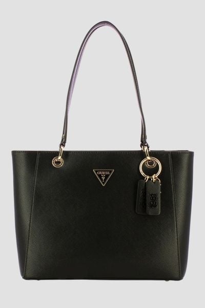 Czarna torebka damska marki Guess, wykonana z wysokiej jakości skóry ekologicznej. Model ten wyróżnia się funkcjonalnym wnętrzem, posiada jedną dużą komorę główną, która dzieli się na dwie mniejsze.Dodatkowo torebka wyposażona jest w trzy przestronne kieszenie wewnętrzne, umożliwiające wygodną organizację niezbędnych drobiazgów. Zestaw posiada worek przeciwkurzowy.
