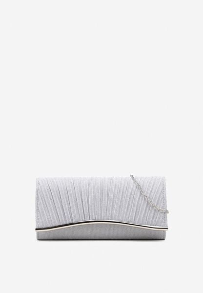 Srebrna Brokatowa Torebka Kopertówka z Łańcuszkiem Bobbette