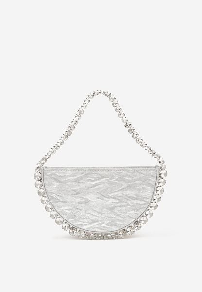 Srebrna Wieczorowa Torebka z Rączką Wykończona Cyrkoniami i Łańcuszkiem Fenagia