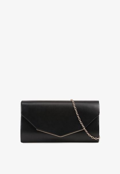 Czarna Torebka Kopertówka z Dodatkowym Łańcuszkiem i Zapięciem na Zatrzask Vinira